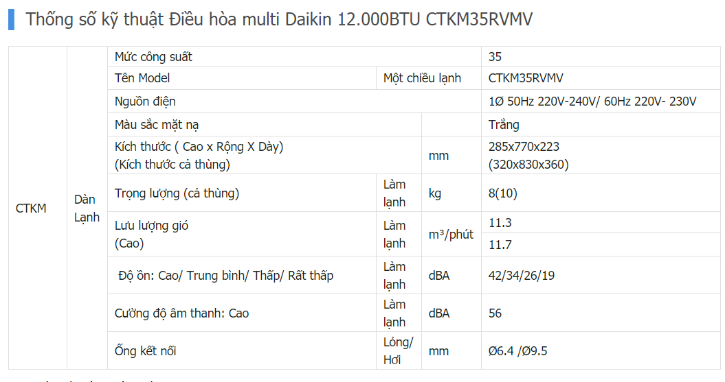 Đặc điểm nổi bật Dàn lạnh treo tường Multi Daikin 1 chiều 9000BTU CTKM35RVMV