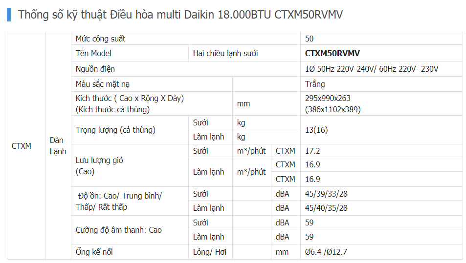Đặc điểm nổi bật dàn Lạnh Treo Tường Điều hòa multi Daikin 18.000BTU CTXM50RVMV
